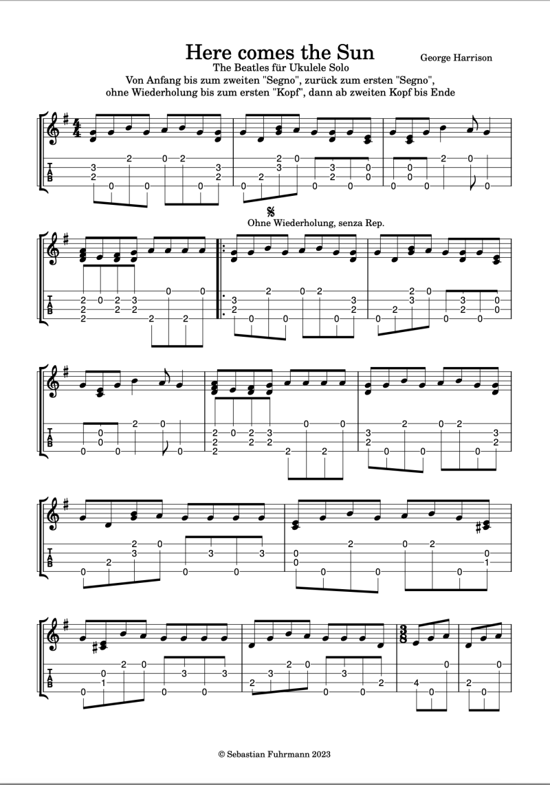Here_comes_the_Sun.pdfHere comes the Sun, 2 Ukes: rechts und links